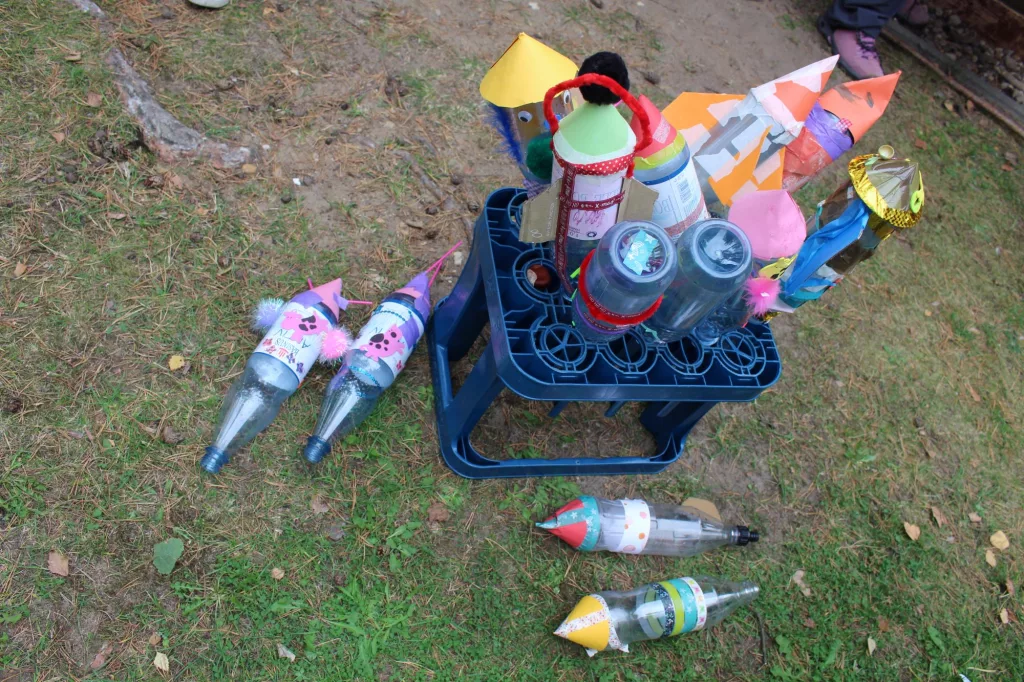 Ein Highlight war sicherlich die Eröffnung eines Raketentestgeländes, wo die Familien gemeinsam die Flugeigenschaften der zuvor gebauten Wasserantriebsraketen testen konnten. Es konnten die vielfältigsten Modelle bestaunt werden: einige waren klassisch, andere hatten Tiere wie Mäuse oder Schmetterlinge zum Vorbild.