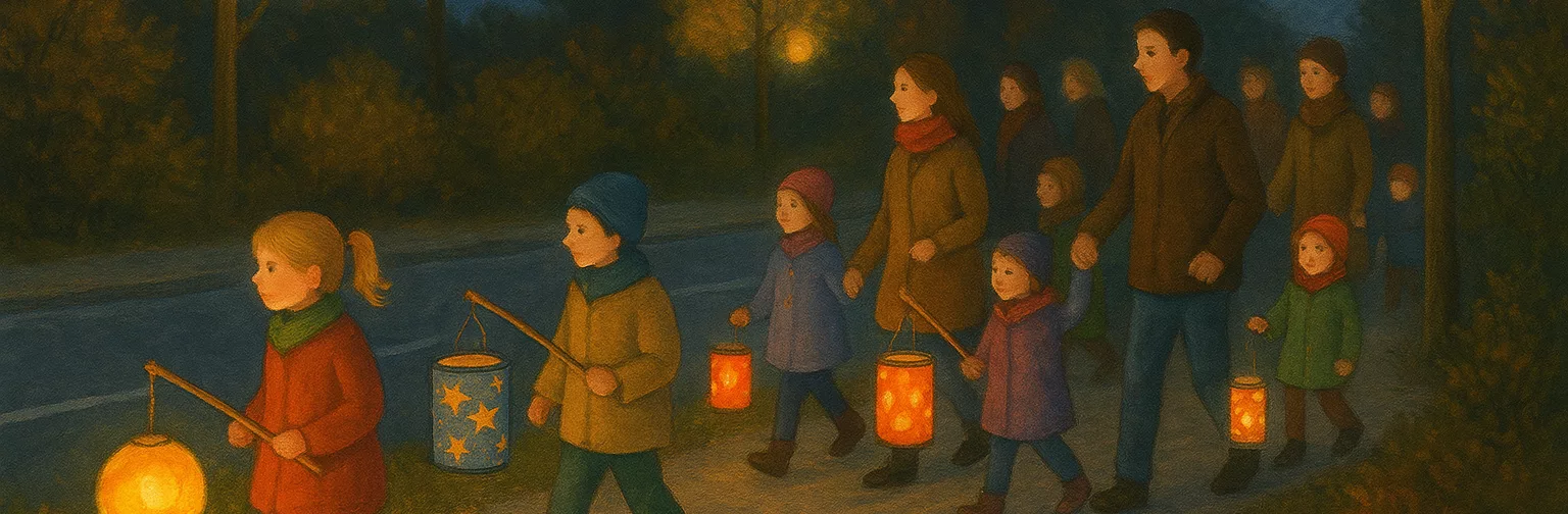 Am diesjährigen Martinstag fand unser alljährlicher Laternenumzug statt. Gemeinsam mit den Familien der Musikkita F. W. Zachow trafen wir uns am Holzplatz, sangen dort gemeinsam und starteten dann mit unserem Umzug durch die Pulverweiden. Damit alle Teilnehmer*innen wissen, welchen Weg wir gehen, haben die fleißigen Erzieher und Erzieherinnen zuvor beleuchtete Laternen am Wegesrand ausgehangen. Am Ziel angekommen, versammelten sich Groß und Klein zum Singen weiterer Lieder und wurden dabei von unseren Musikern mit Instrumenten begleitet. Ganz im Sinne St. Martins verteilten wir schließlich die von den Kindern selbstgebackenen Martinshörnchen und teilten.